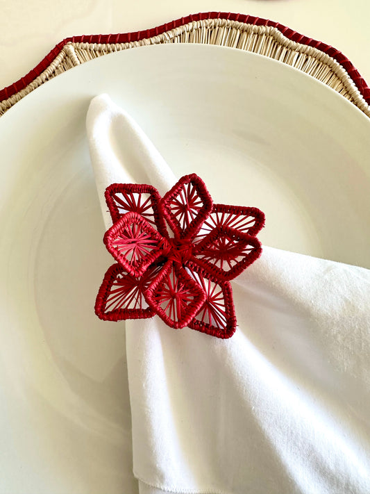 Red Flower Iraca Napkin Ring (Set of 6 & 8)
