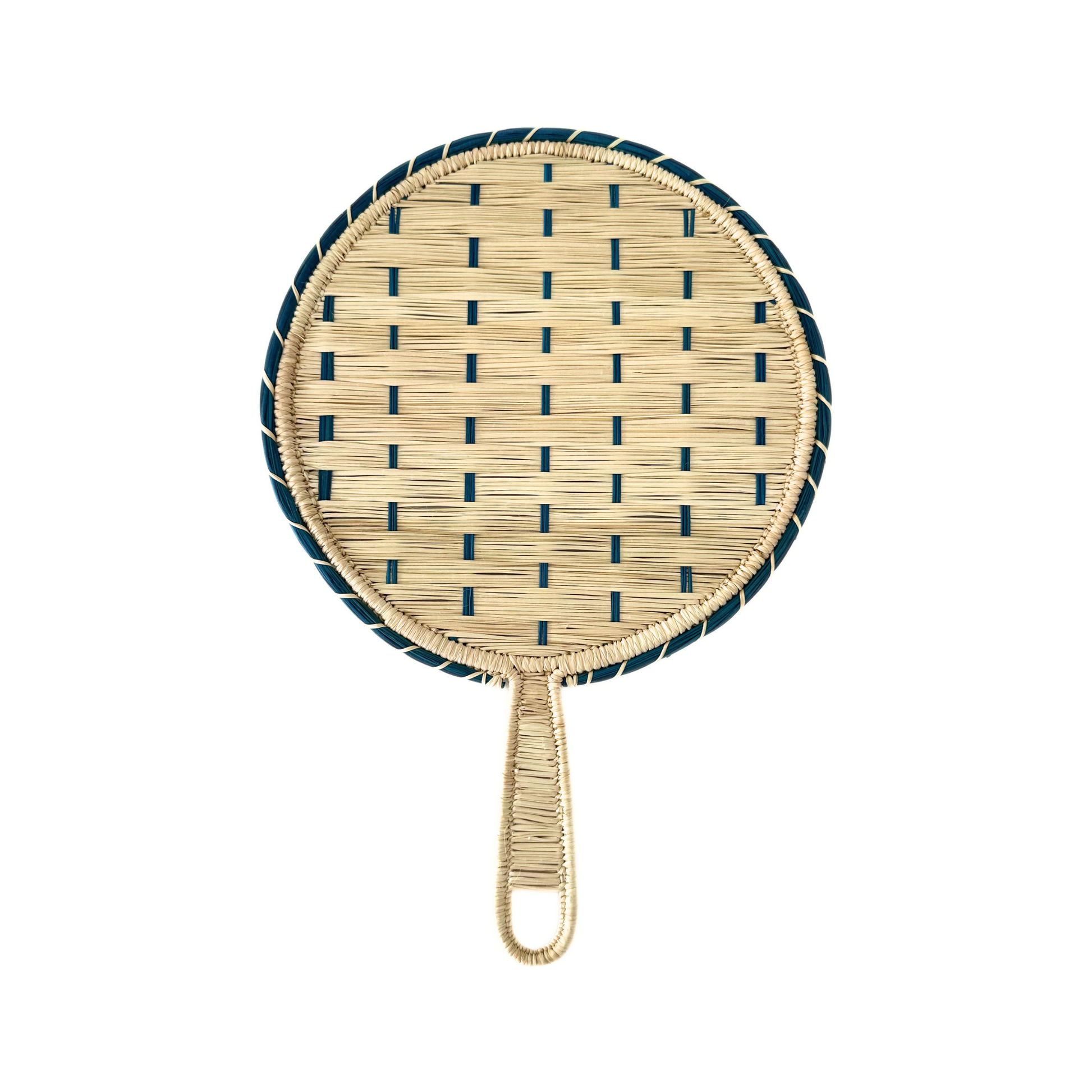 Crafted by skilled artisans in the Caribbean coast of Colombia, this Amalfi Hand Fan is shaped on a hand-welded wireframe and woven with Iraca palm, a natural, sustainable fiber known for its strength and delicate texture.