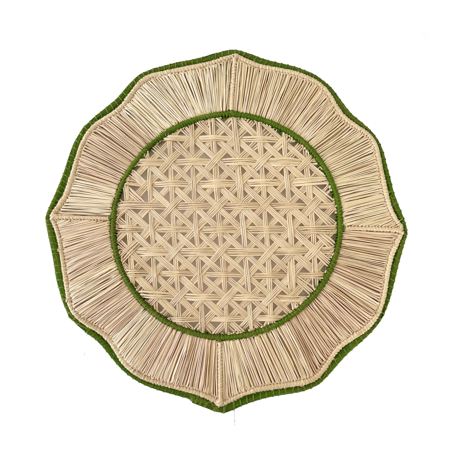 Crafted by skilled artisans in the Caribbean coast of Colombia, this Evergreen Placemat is shaped on a hand-welded wireframe and woven with Iraca palm, a natural, sustainable fiber known for its strength and delicate texture.