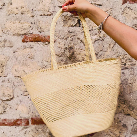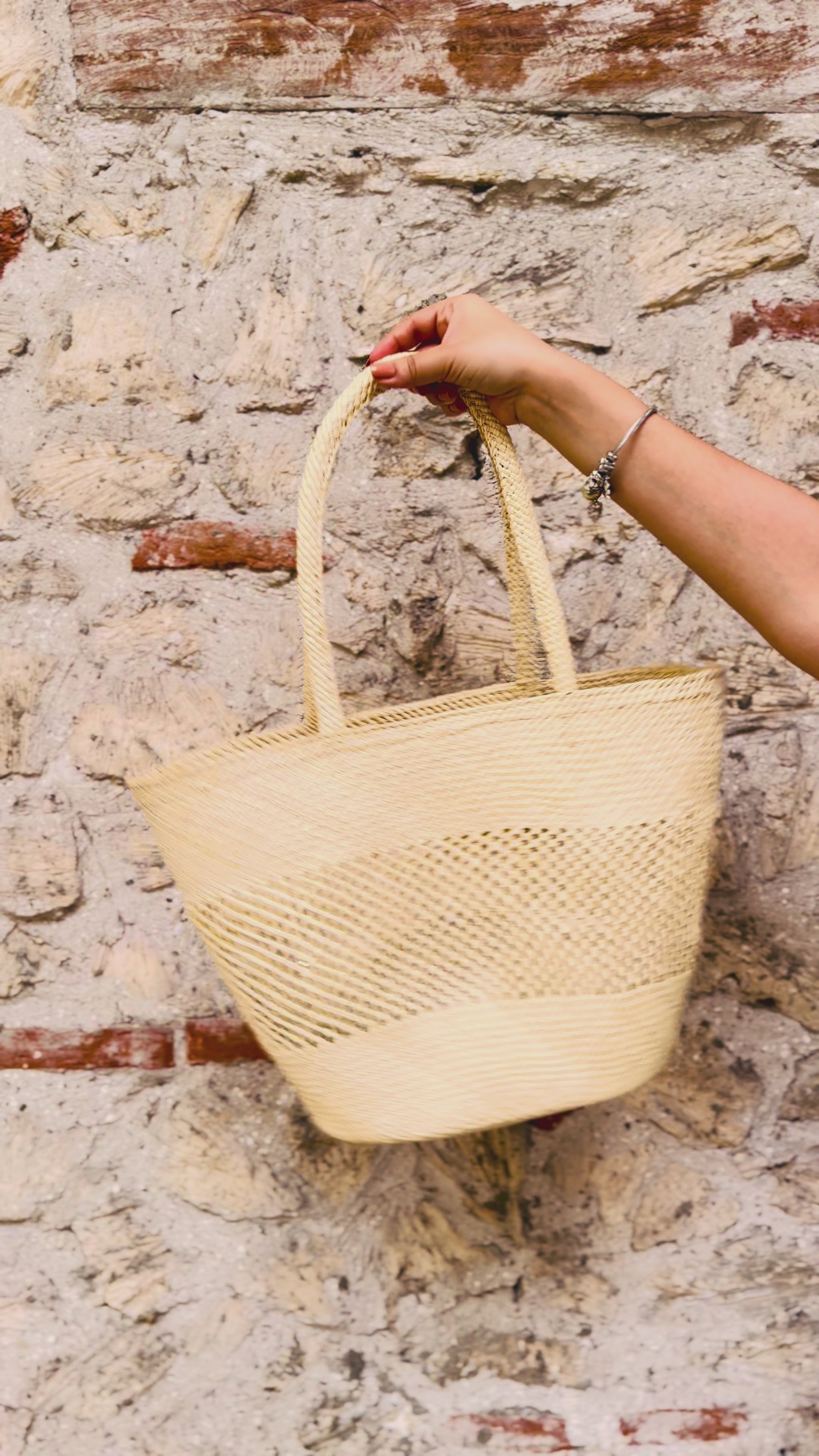 This beautiful and one-of-a-kind basket is handcrafted entirely from Iraca Palm by artisans in Sandona. It's the perfect statement piece to complement your summer looks. With its two comfortable handles, this Colombian gem is made to go with you wherever the sunshine takes you!