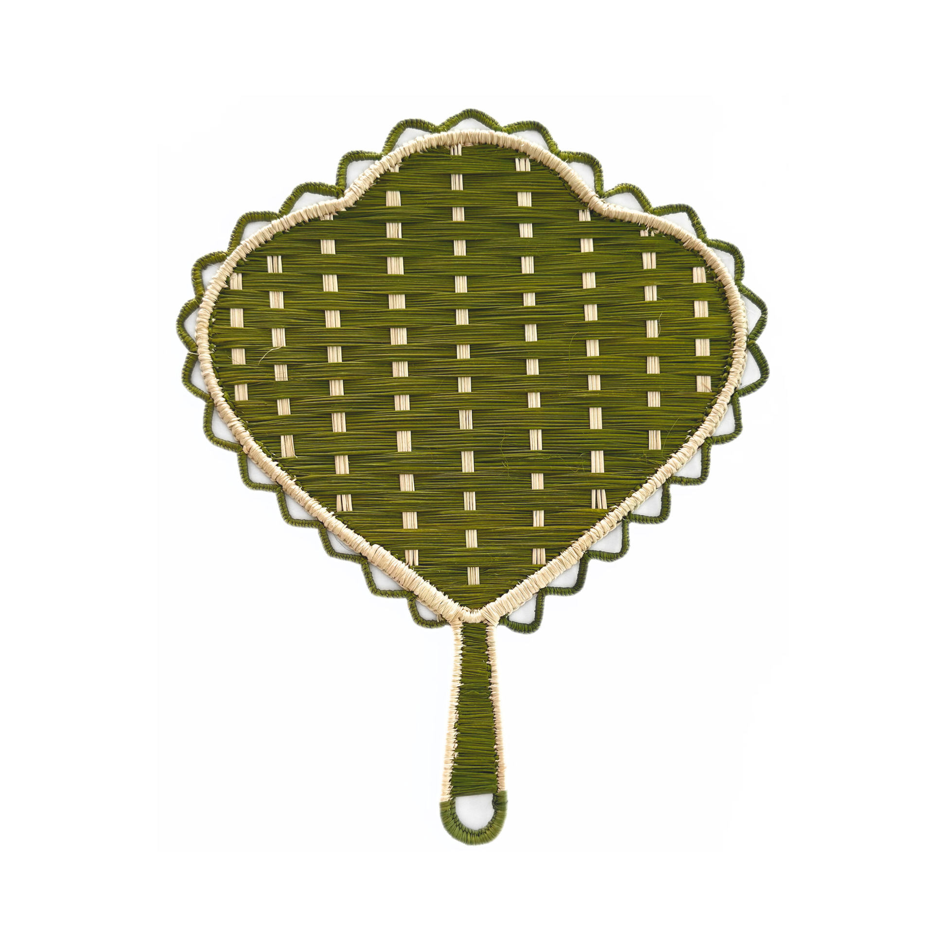 Crafted by skilled artisans in the Caribbean coast of Colombia, this Leaf Hand Fan is shaped on a hand-welded wireframe and woven with Iraca palm, a natural, sustainable fiber known for its strength and delicate texture.
