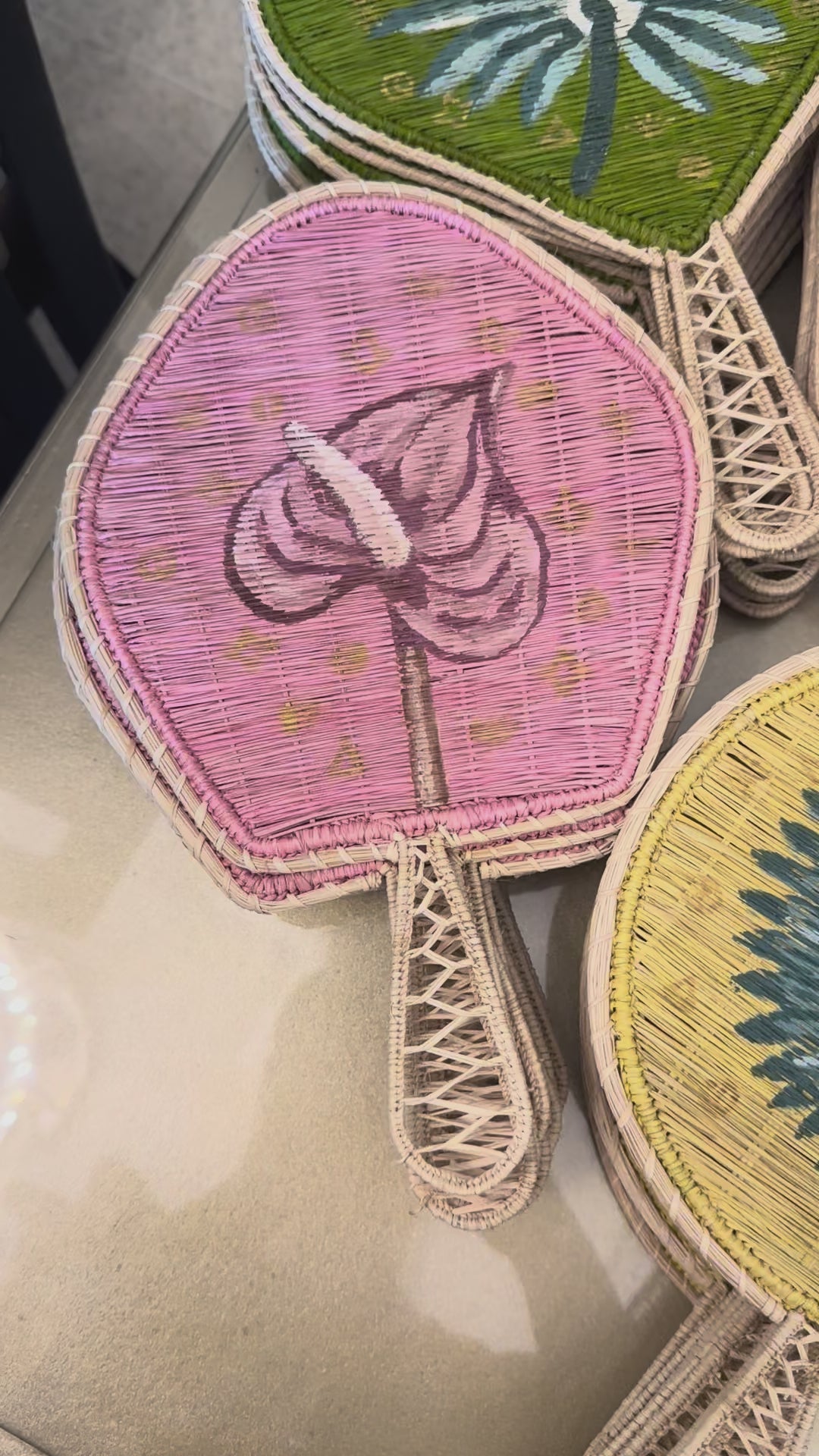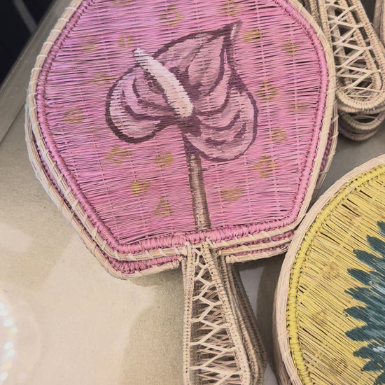 Crafted by skilled artisans in the Caribbean coast of Colombia, this Tropique Hand Fan is hand painted, shaped on a hand-welded wireframe and woven with Iraca palm, a natural, sustainable fiber known for its strength and delicate texture.